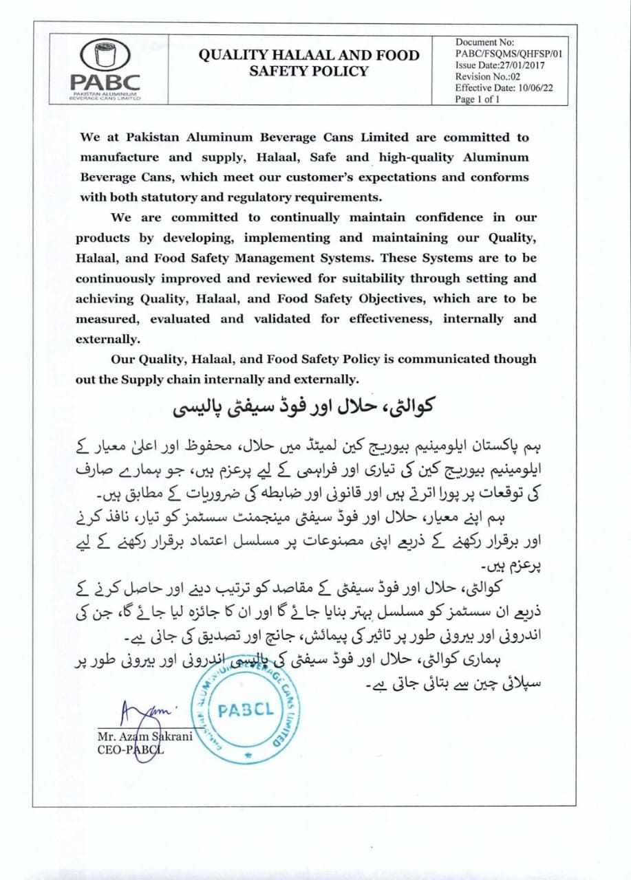 PABC is a responsible corporate citizen of Pakistan and plays an active role in tree plantation drives, blood donation campaigns and other philanthropic activities. The Company is also playing a pivotal role in addressing environmental concerns and global warming by providing environment-friendly solutions to Pakistan (and region’s) beverage producers.